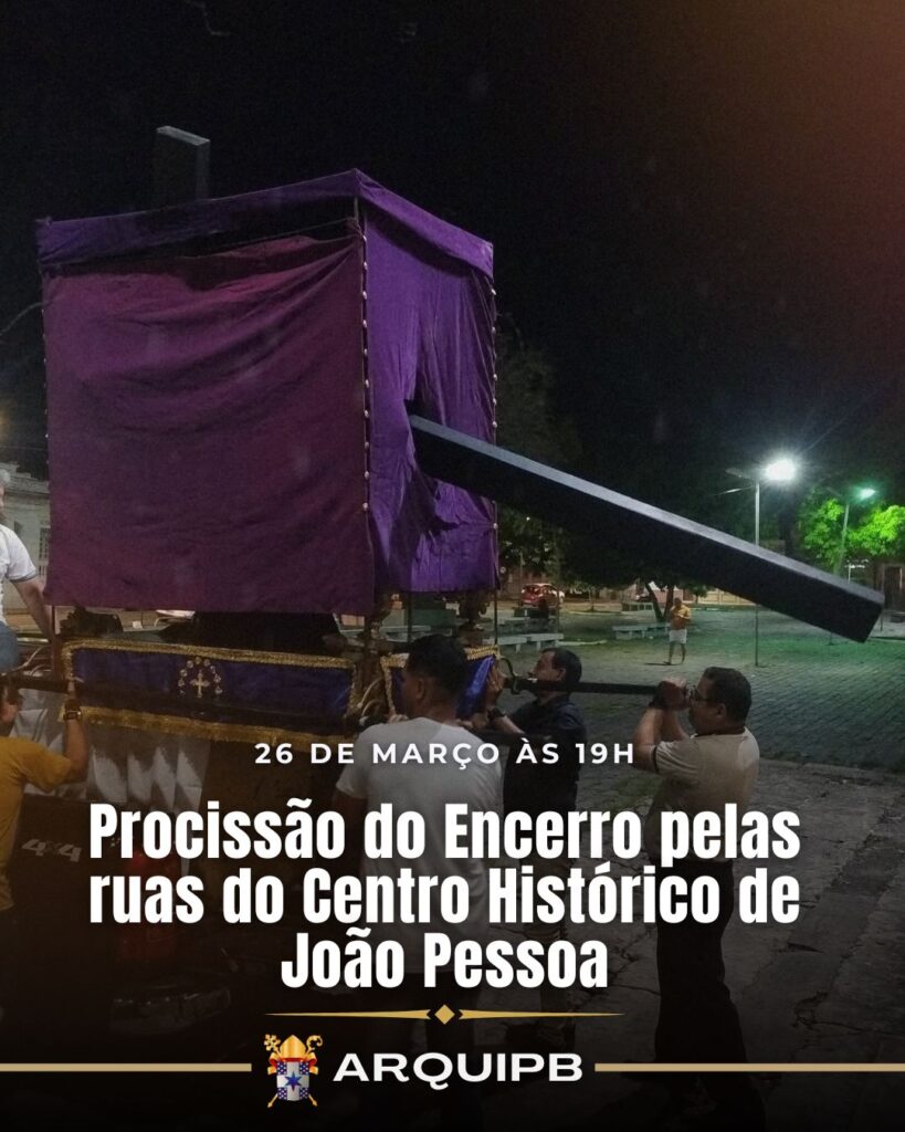 A Arquidiocese da Paraíba realiza, nesta quinta-feira, 26 de março, às 19h, a tradicional Procissão do Encerro, um dos momentos